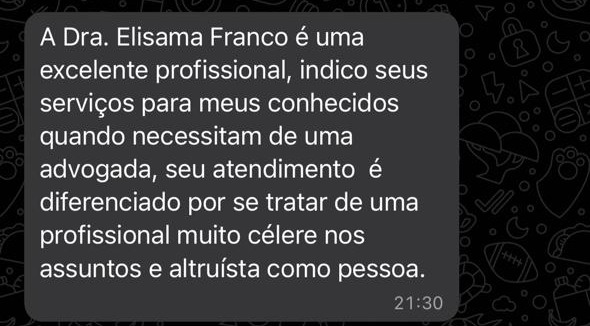 O escritório de advocacia criado por sua fundadora, Dra. Elisama Franco Paulino, com formação especializada em Direito Civil, Direito de Família e Direito empresarial conta com mais de 10 anos de experiência .